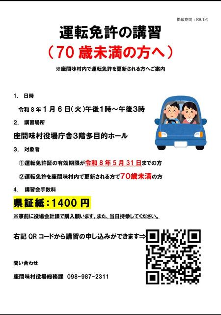 令和8年1月6日(火曜日)運転免許講習会を実施します。
