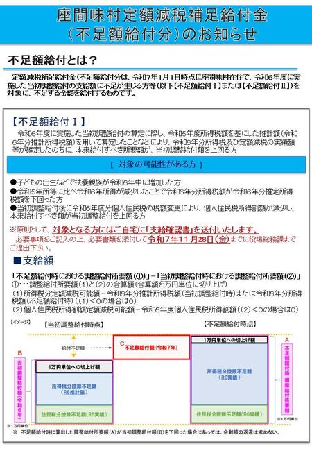 (再掲)座間味村定額減税補足給付金(不足額給付)支給のお知らせ