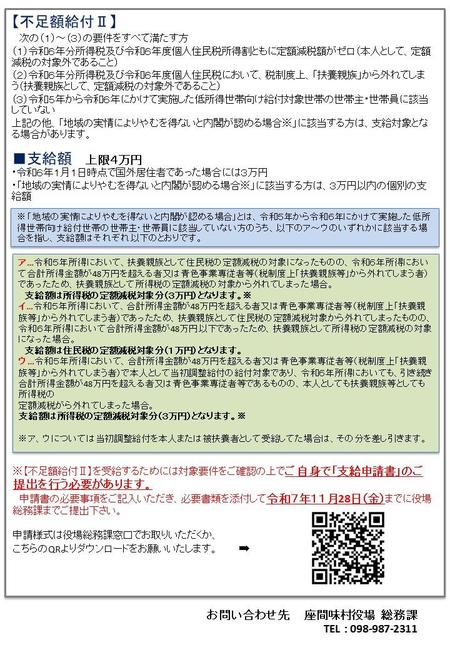 座間味村定額減税補足給付金について